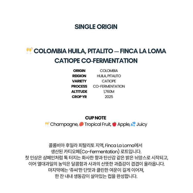 콜롬비아 핀카 라 로마 핑크샴페인 코퍼먼테이션 원두 커피100g
